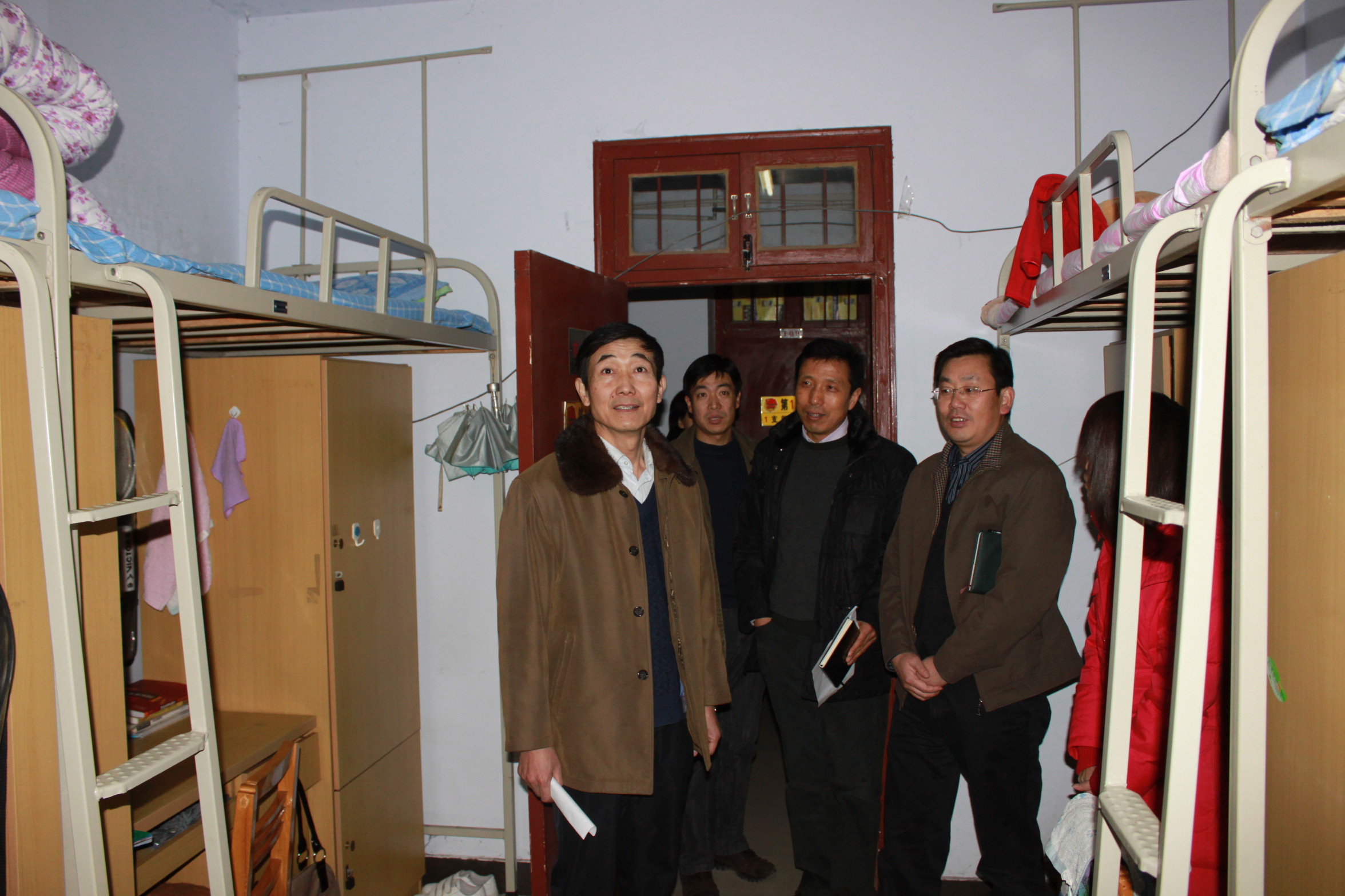 2010年12月20日下午,窦效民副书记在后勤集团、学工部(处)及团委负责同志的陪同下,深入我校各个园区学生宿舍走访,考察了宿舍设施并与学生亲切交谈,了解学生的学习生活状况。