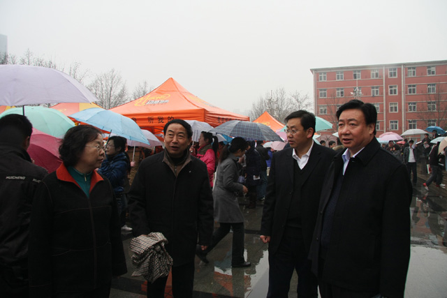 校领导在供需见面会室外现场视察