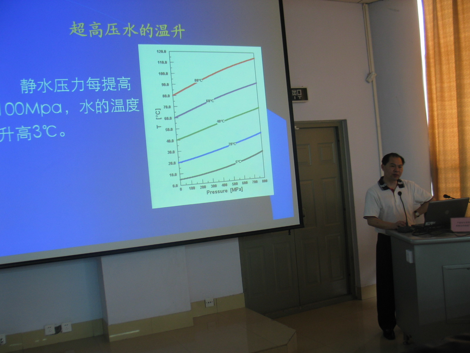 励建荣教授对超高压食品加工技术作了全面的介绍,并对超高压新技术今后的发展、应用及当前存在的问题进行了深入的阐述。励教授还介绍了他对我国食品质量与安全人才培养及学科发展的一些思考,他结合浙江工商大学食品安全专业的建立、发展及当前的发展趋势,综合论述了食品安全的重要性。他讲到,食品安全是全世界各国政府和人民都关心的大问题,20世纪90年代后期以来,我国食品安全形势和高等教育的形势发生了巨大的变化,随着老专业的改造和新形势的发展,我国高校的食品安全专业也逐步形成了清晰的指导思想和培养模式,并逐渐在教学实践中取得了良好的成效。励教授幽默诙谐的语言和深入浅出的讲解,受到了与会教师、研究生和部分本科生的欢迎。