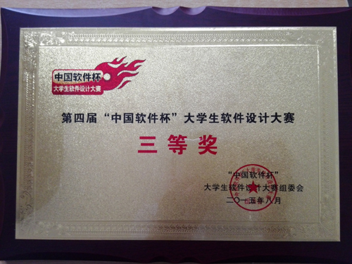 近日,由工业和信息化部、教育部、江苏省人民政府联合主办的第四届“中国软件杯”大学生软件设计大赛决赛在南京航空航天大学举行。我校计算机与通信工程学院2012级马新新等同学组成的众垚队成功晋级决赛,经过作品现场展示和决赛答辩的激烈角逐,凭借项目的强实用性以及代表队决赛答辩的优异表现,得到了评委老师的充分肯定,最终获得大赛三等奖(本科组)。