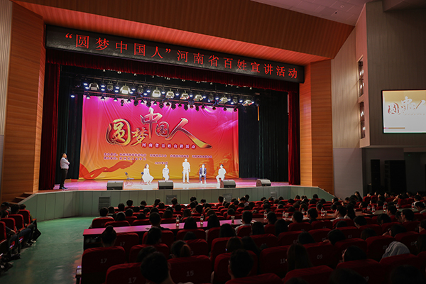 9月25日,由中共河南省委宣传部、河南省总工会、共青团河南省委、河南省妇联共同主办的全省“圆梦中国人”百姓宣讲活动在我校东风校区礼堂举行。中共河南省委宣传部副部长张曼如,共青团河南省委副书记王笃波,郑州轻工业学院党委书记俞海洛、党委副书记马英等出席活动,郑州轻工业学院相关职能部门负责人、青年教职工代表和团员青年学生等1000余人参加活动。