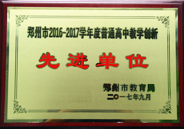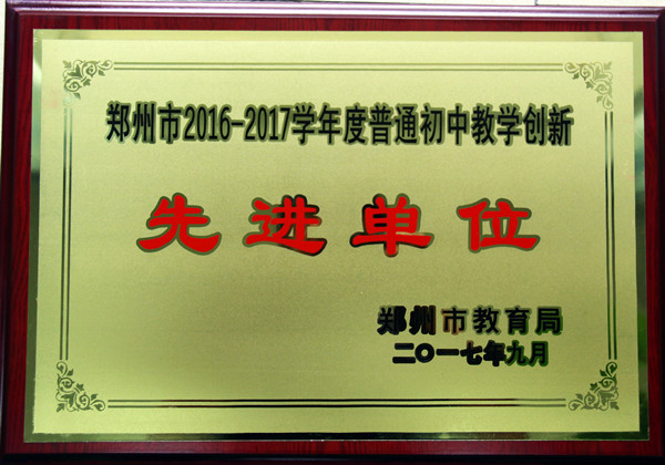 “郑州市教学创新先进单位”是郑州市教育局授予办学单位的最高荣誉。我校附属学校高中部连续两年、初中部第十次获此殊荣。
