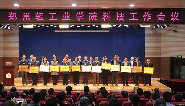 党委副书记尚宝平宣读了《郑州轻工业学院关于表彰科研工作先进集体和先进个人的决定》,校领导为各获奖单位和个人颁发奖牌和证书。