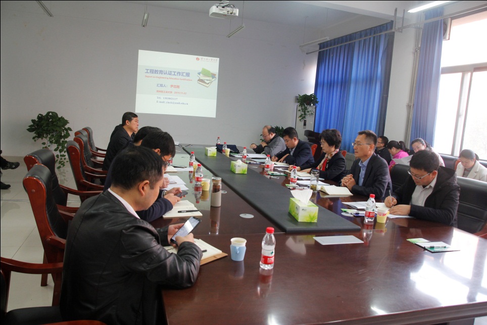 两个学院汇报了工程认证申报情况,介绍了基于OBE理念的课程教学大纲制定情况、课程质量评价机制的建立情况,提出了工程认证工作方面存在问题及需要学校层面协调的难题。