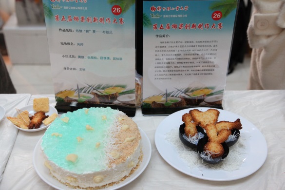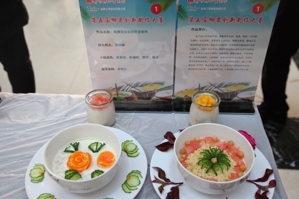 “椰果创新制作大赛”自2007年首届举办以来,受到我校师生的高度重视。本届赛事分为椰果糕点、椰果饮料及其他类,共收到创意策划作品120项,初选60项进行复赛。