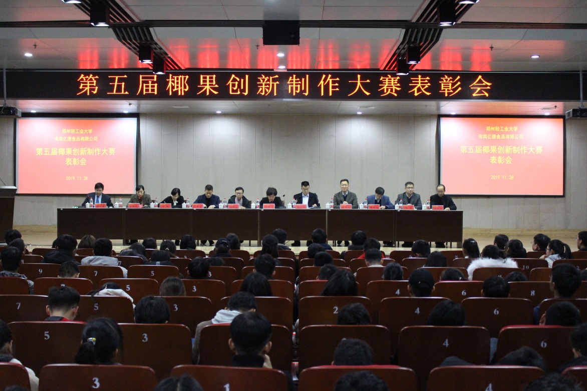 下午3点,在科学校区图书馆报告厅举行了大赛颁奖表彰会。食品与生物工程学院院长白艳红教授宣读了《关于表彰“第五届椰果创新制作大赛”优秀作品的决定》;吴永辉校友发表了讲话,高度赞扬了学院学生积极参赛的热情,对大赛获奖作品给予里充分肯定。吴永辉介绍了自己做这项活动的初心:一是回馈母校,希望母校未来发展的更好;二是通过大赛培养出更多具有创新创业能力的新时代接班人。