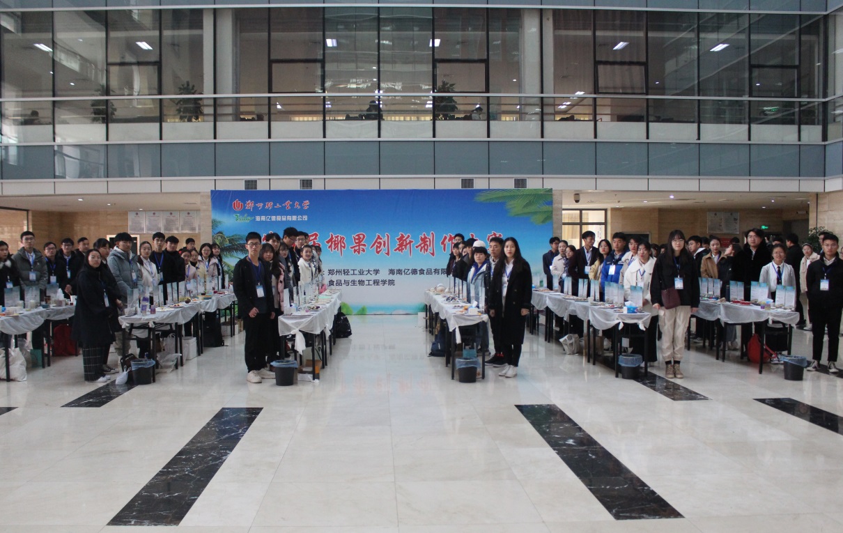 与海南亿德食品有限公司联合举办的第五届椰果创新制作大赛在我校科学校区图书馆隆重举行。副校长王新杰教授、海南亿德食品有限公司董事长吴永辉校友、教务处、学工部(处)、校团委、校友办等部门及食品与生物工程学院负责人和相关师生参加了活动。