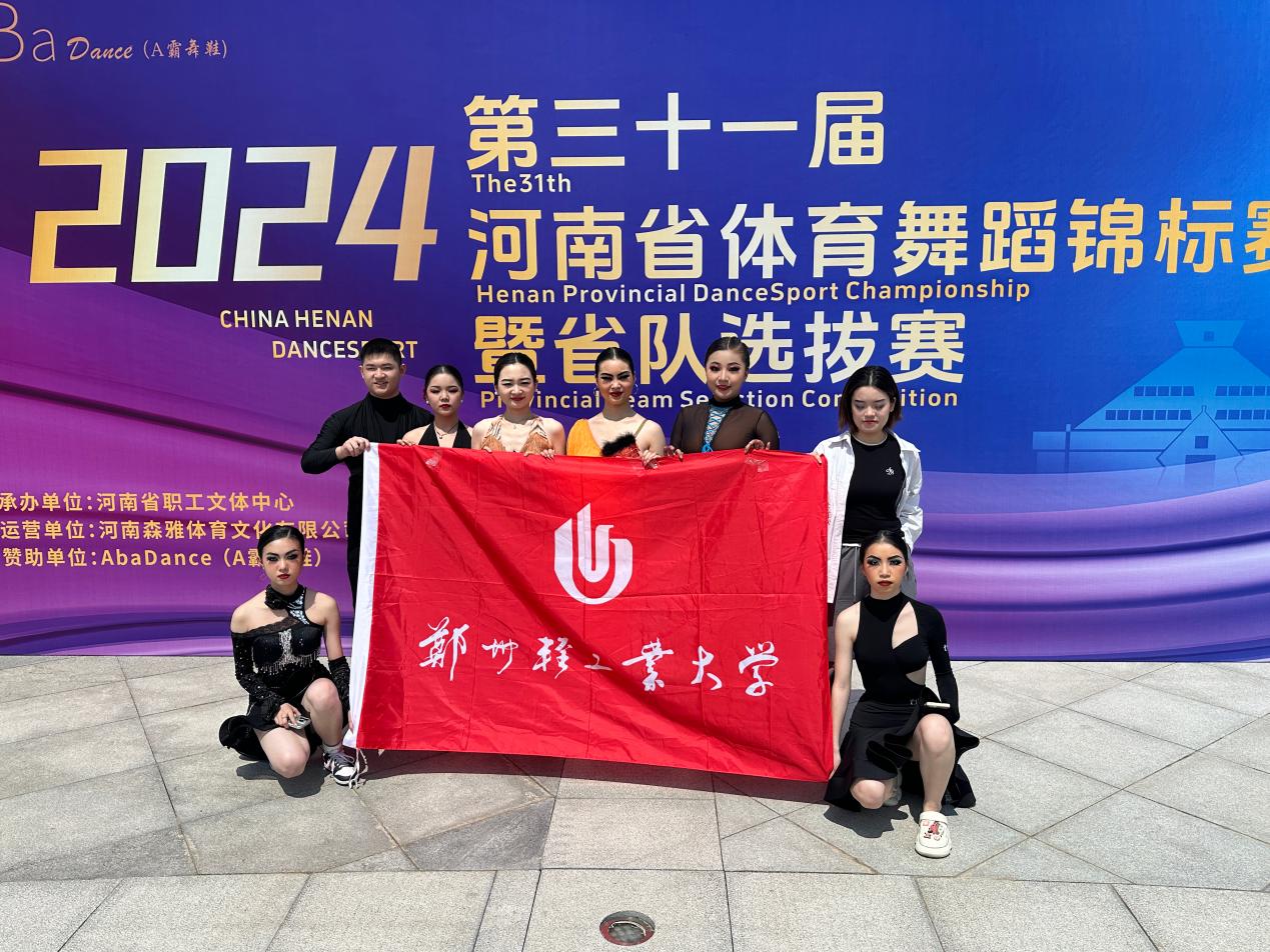 本次大赛的大学生组竞争激烈,开云APP官网下载和官网链接 与郑州大学体育学院、河南大学、河南师范大学、天津师范大学等十几所专业院校同场竞技。我校以艺术教育中心张艺帆主任为领队、王靖老师为教练,带领8名同学组队参加了高校组3个项目的比赛。赛场上,国内各高校同场竞技,我校舞蹈队员团结一致、默契配合,充分展现了出色的舞蹈技巧和团结协作、积极向上的精神风貌。经过两天的紧张比赛,我校学生均进入最后决赛,并在各自比赛项目中脱颖而出,来自外国语学院宋慈同学获大学生拉丁舞单人A组亚军;材料与化学工程学院陈雅轩、李静怡和经济与管理学院张曦蓉同学包揽大学生单人B组冠亚季军;计算机科学与技术学院付德金和张曦蓉搭档斩获大学生拉丁舞双人单项冠军。