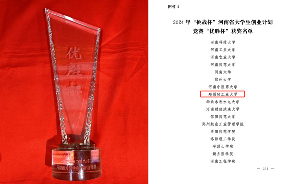 近日,共青团河南省委、河南省教育厅、河南省人力资源和社会保障厅、河南省科学技术协会和河南省学生联合会联合下发《关于公布2024年“挑战杯”河南省大学生创业计划竞赛获奖名单的通知》,我校共获得省奖50项,其中金奖9项、银奖16项、铜奖25项,获奖数量在历年“挑战杯”大学生创业计划竞赛中再创新高,综合积分位居全省高校第八名,学校连续八年捧得“优胜杯”。