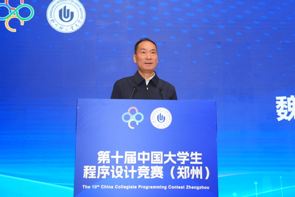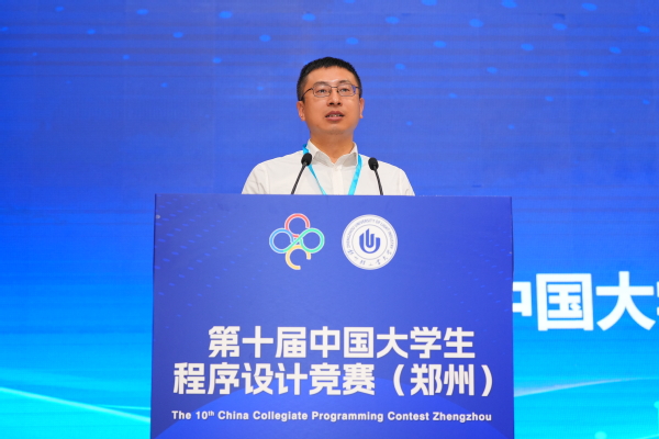 邬晓钧代表中国大学生程序设计竞赛组委会致辞,中国大学生程序设计竞赛是由中国大学生程序设计竞赛组委会举办的年度性赛事,旨在激发高校学生学习计算机专业知识的兴趣,培育和选拔高素质的信息技术人才,希望同学们在大赛中灵活运用计算机知识和技能解决实际问题,有效提升算法设计、逻辑推理、数学建模、编程实现和计算机系统能力,以坚持不懈的努力创造优异的比赛成绩。