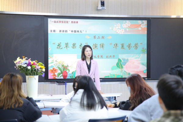 为进一步传承中华优秀传统文化,提升学生对中华文化的认同感与自豪感,11月21日下午,三实书院、祥顺苑、采薇苑三个“一站式”学生社区联合在科学校区三教楼520室举办“浓浓的‘中国味儿’——‘花果草木’演绎‘华夏芬芳’”第二期主题思政课。本次思政课由马克思主义学院副教授刘兴华老师主讲,马克思主义学院负责同志、学生社区党工委和管委会负责人、学生社区育人导师、社区学生代表等参加本次思政课。