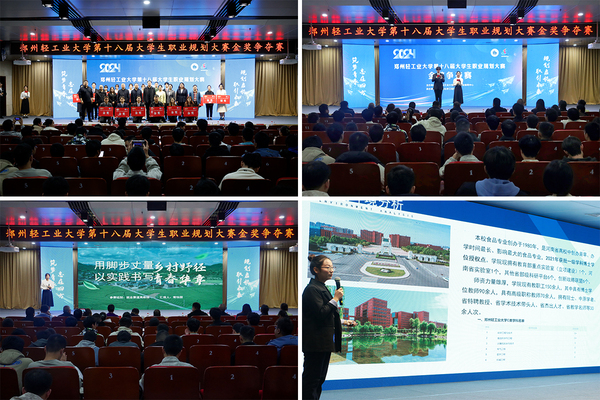 1121日,学校第十八届大学生职业规划大赛金奖争夺赛在科学校区图书馆学术报告厅成功举办。河南省首届大学生就业指导名师、省高等学校教学名师刘筠,教育部全国万名优秀创新创业导师李金保,教育部优秀创新创业导师人才库专家蒋华勤与郑州大学、中原工学院、郑州航空工业管理学院等6位担任专家评委;奥克斯中央空调河南总经理孙永刚等5位企业代表担任企业评委,两校区500余名学生现场观看了比赛。校党委副书记杨新宇出席大赛并为获奖选手颁奖。