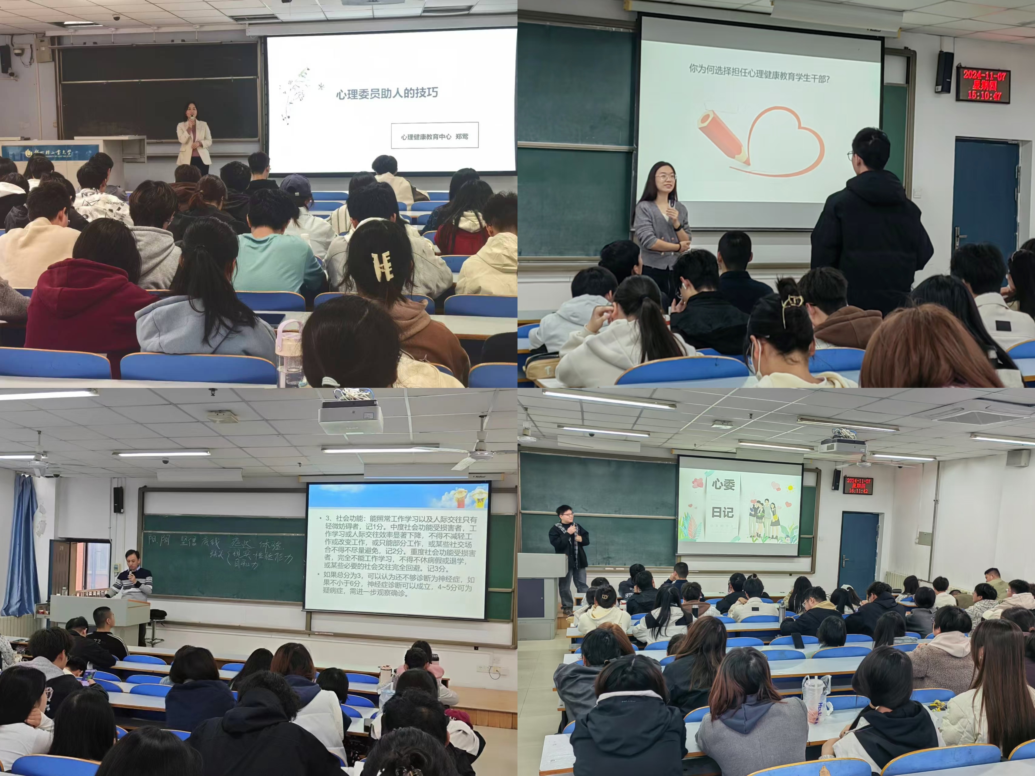 10月25日至12月5日,为期7周的2024级本科生(含专升本)班级心理委员培训工作圆满结束。培训由心理健康教育中心主办,在两校区同时进行,全校2024级300余名心理委员参加。